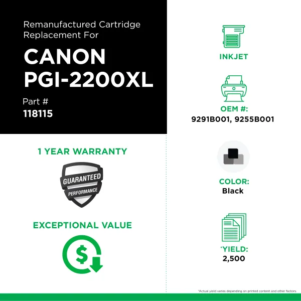 High Yield Black Ink Cartridge for Canon PGI-2200XL (9291B001/9255B001)