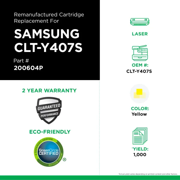 Yellow Toner Cartridge for Samsung CLT-Y407S
