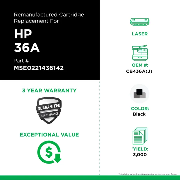 MSE Remanufactured Toner Cartridge for HP 36A (CB436A)