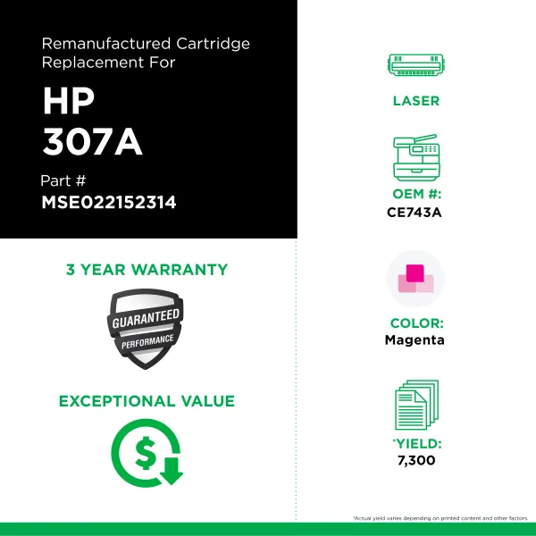 MSE Remanufactured Magenta Toner Cartridge for HP 307A (CE743A)
