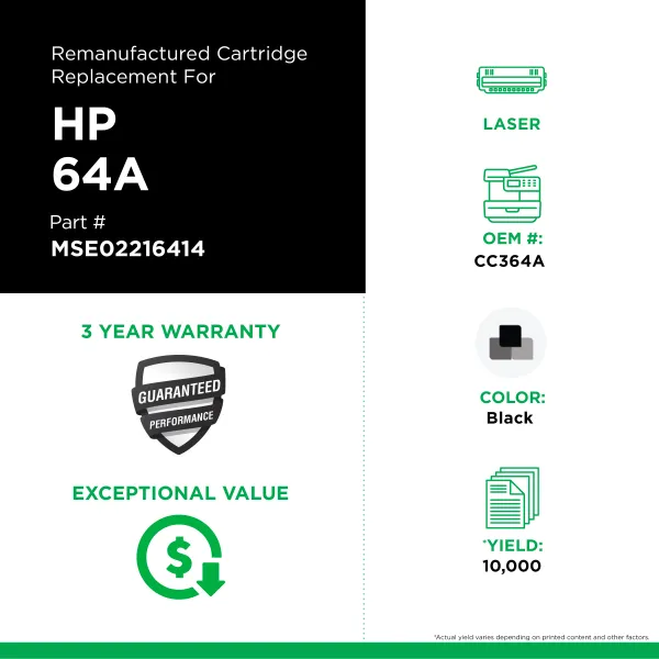 MSE Remanufactured Toner Cartridge for HP 64A (CC364A)